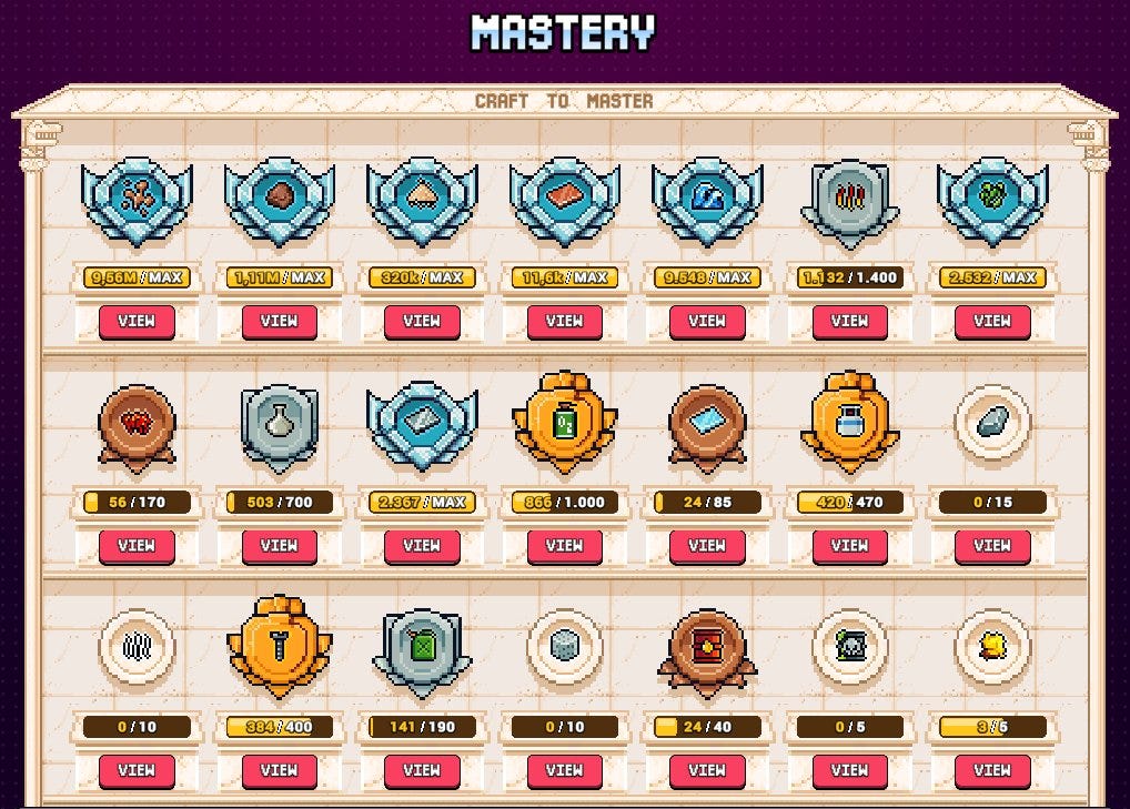As you hit specific milestones for each material, its mastery level increases, making production of that material more efficient. Over time, this becomes a key factor in optimizing long-term output.