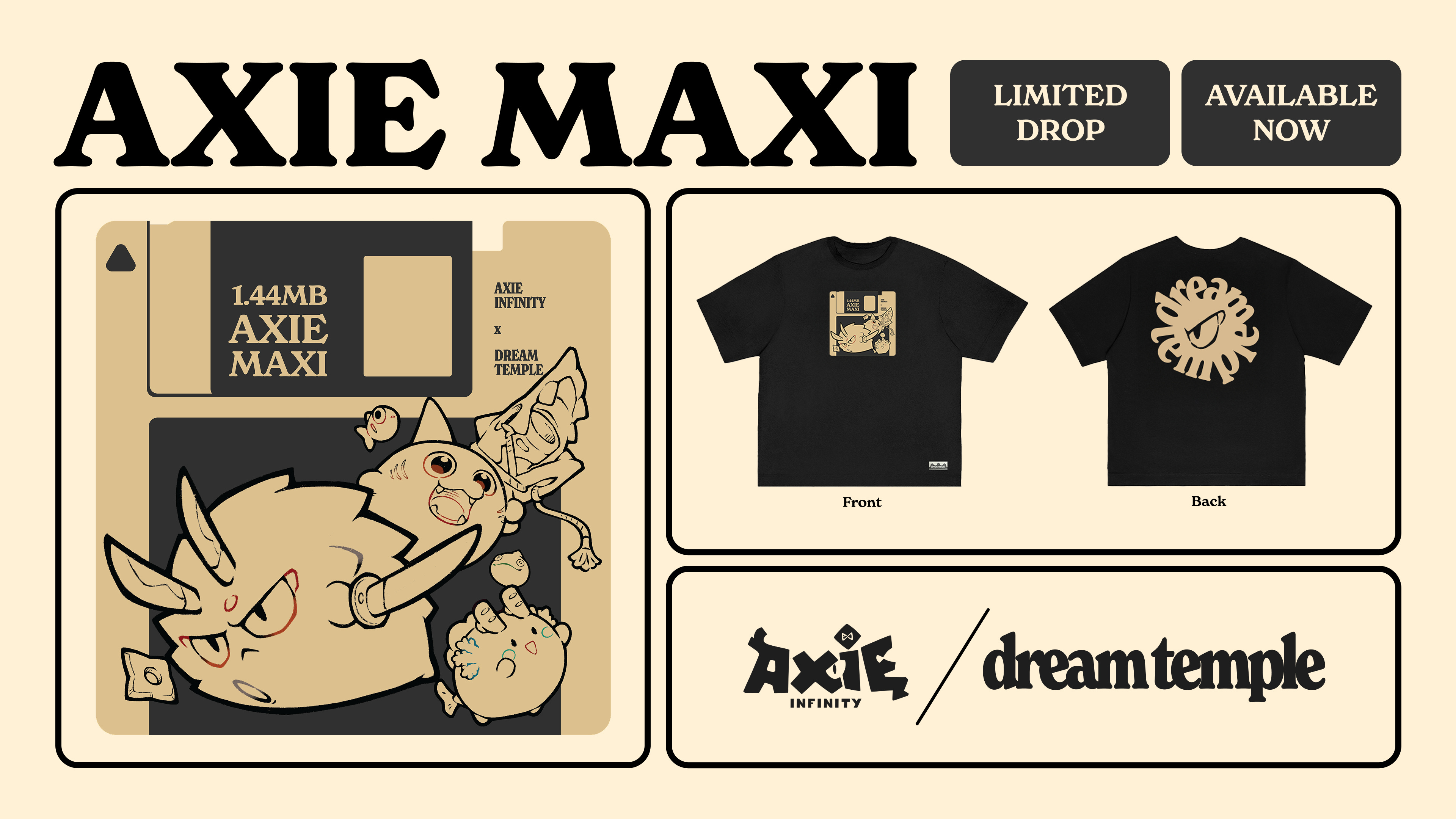 Pre-order YOUR Axie Maxi tee now! There are only 300 shirts left on the shelf. Dream Temple is the lifestyle brand turning philosophies into fabric. They designed this collection in partnership with the Axie Infinity team.
