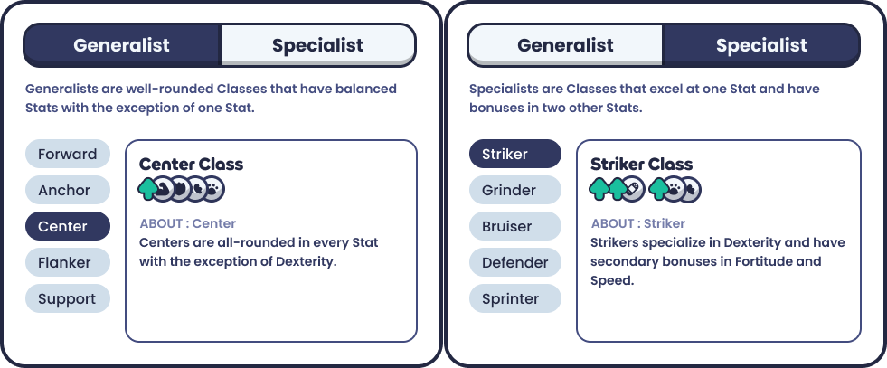 Moki Classes grant stat bonuses and shape your Moki’s actions in battle. There are ten Classes divided in total: Five Specialist and five generalist. Here’s how they work: