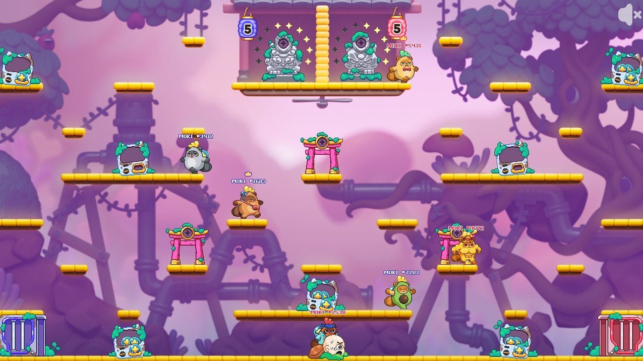 Moki Mayhem is a competitive, team-based game mode where two teams of three Mokis face-off in fast-paced auto-battles. Matches are 100% randomized and take place nonstop throughout the day with three ways to win: Gacha, Combat, and Wart.