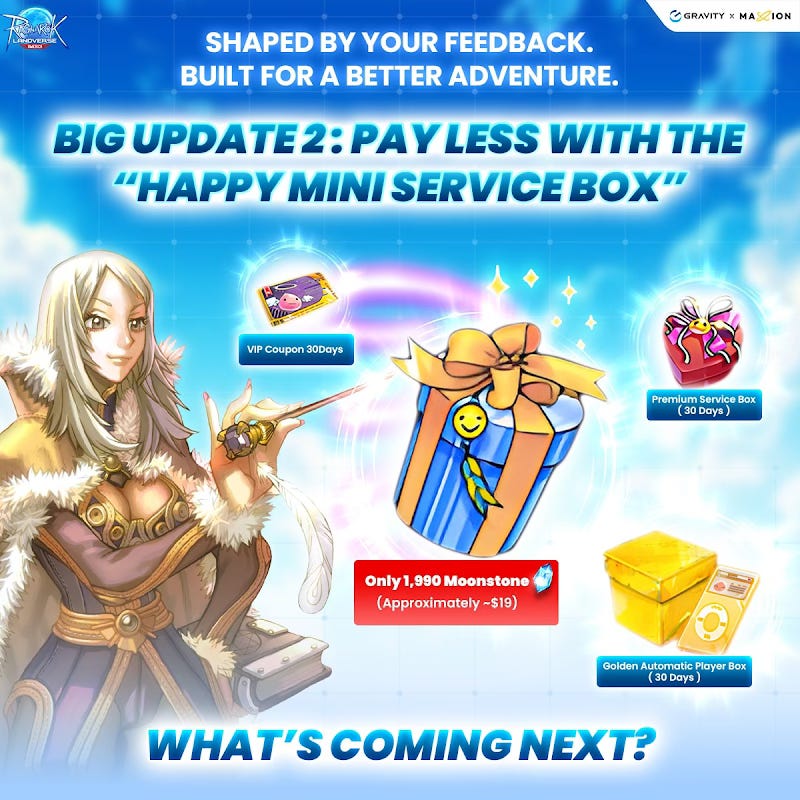 New features available: The ROLA team has removed essential item and equipment trading restrictions, simplified and lowered fees for Happy Mini Service Boxes, and introduced a new NOVA Key Mechanic to help players get more items. Full details below