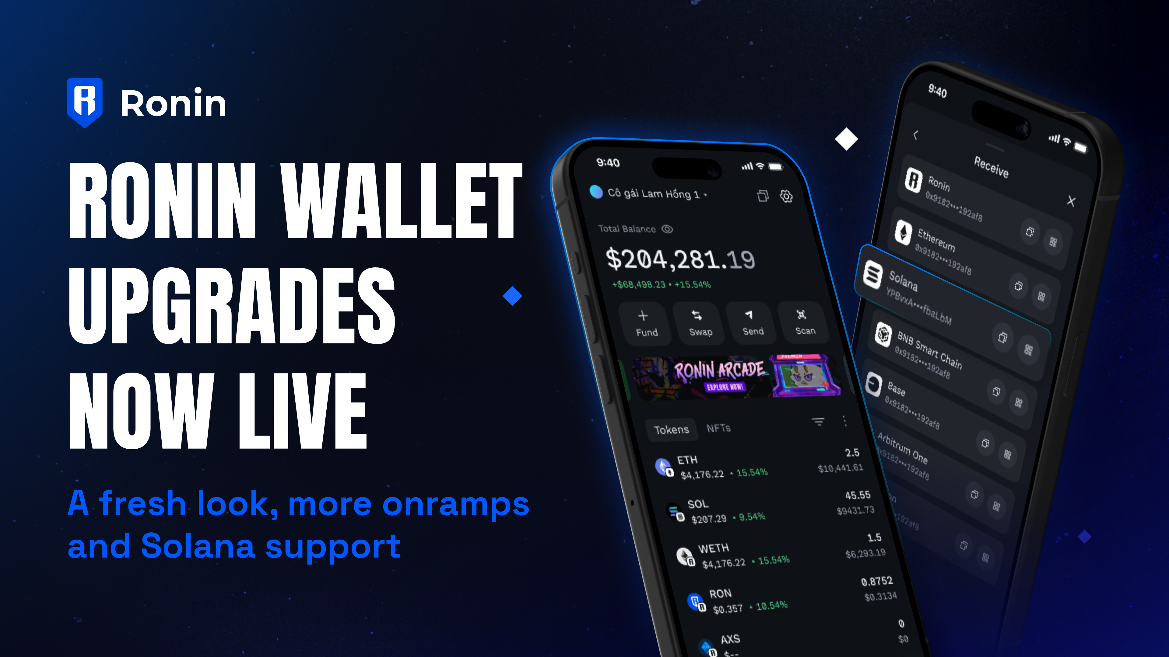 We’re elevating Ronin Wallet’s onboarding features. Your browser extension and mobile apps have a fresh look, more Fiat <> RON purchase options, and even the ability to deposit SOL using Ronin Wallet.